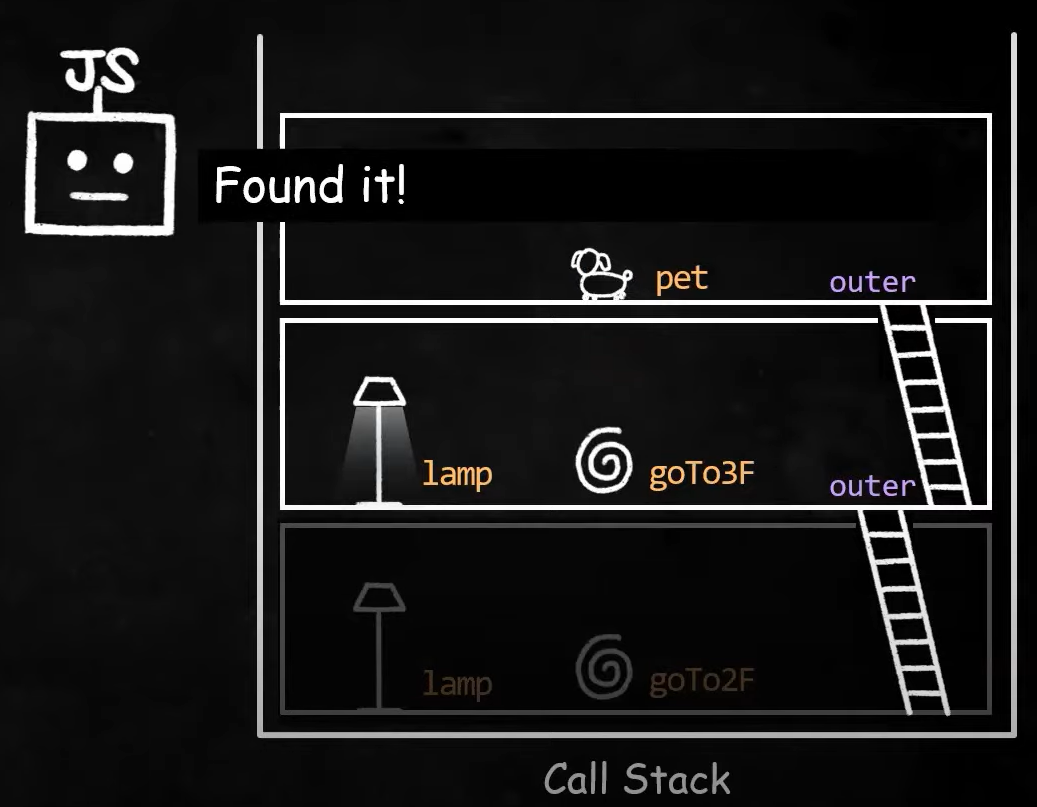 스코프 체인 : 식별자를 결정할 때 활용하는 스코프들의 연결리스트